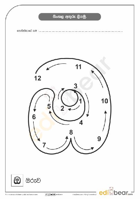 Sinhala Letter ඔ Tracing Worksheet