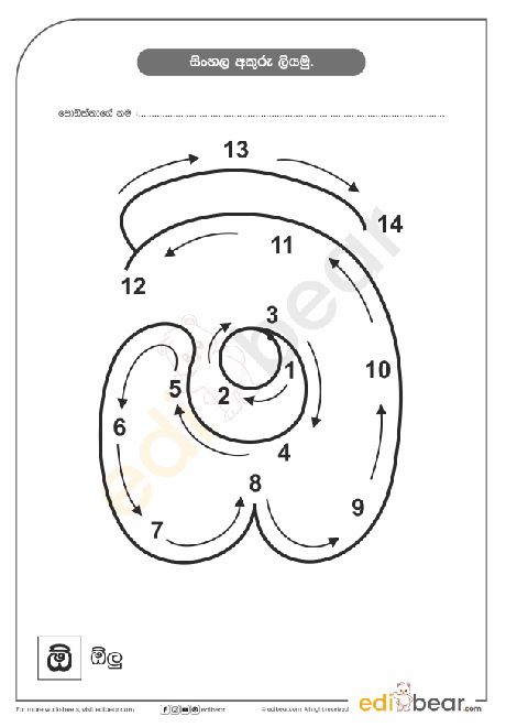 Sinhala Letter ඒ Tracing Worksheet