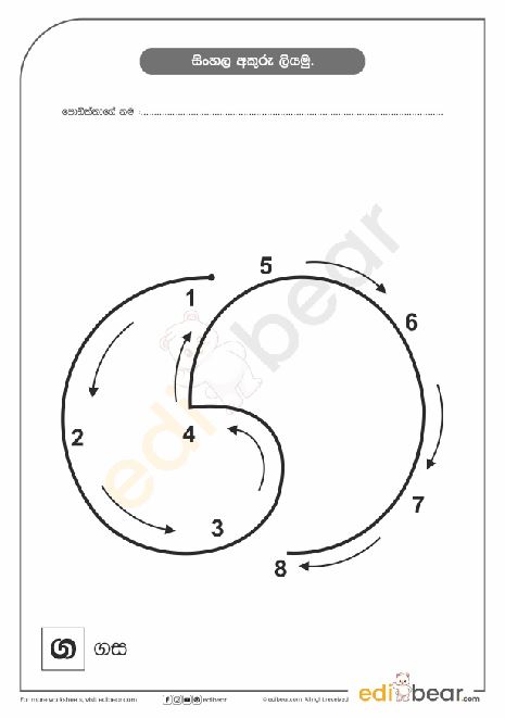 Sinhala Letter ග Tracing Worksheet
