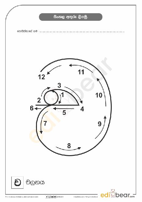 Sinhala Letter ච Tracing Worksheet