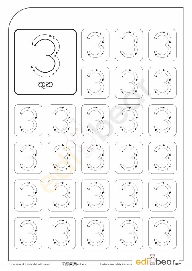 Number 3 Tracing Worksheets