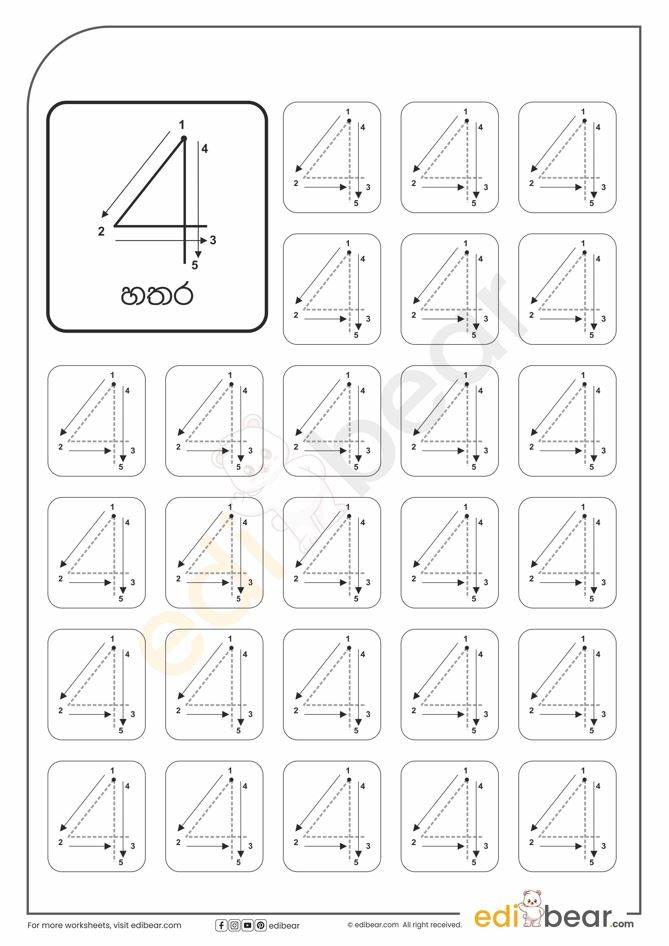 Number 4 Tracing Worksheets