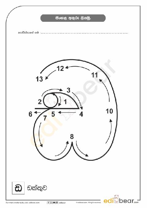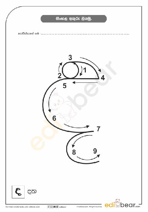 Sinhala Letter ඩ Tracing Worksheet