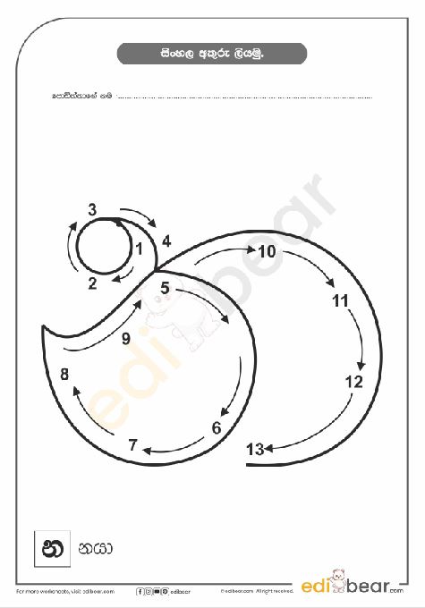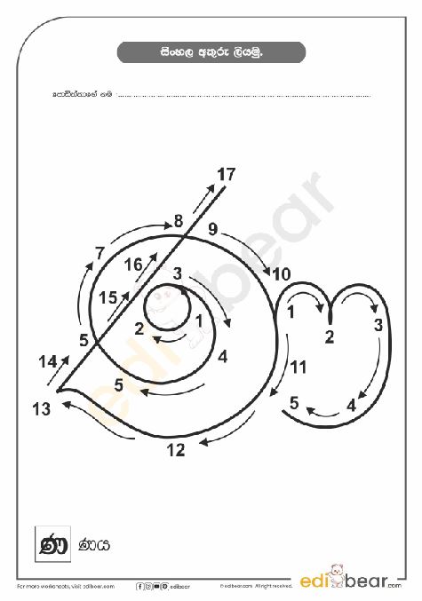 Sinhala Letter ණ Tracing Worksheet