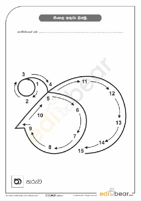Sinhala Letter ත Tracing Worksheet