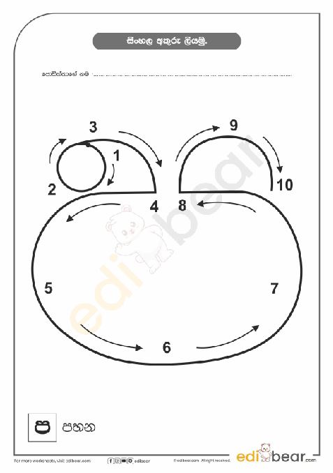 Sinhala Letter ප Tracing Worksheet