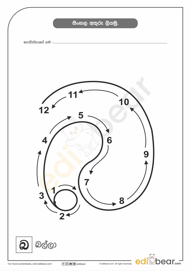 Sinhala Letter බ Tracing Worksheet