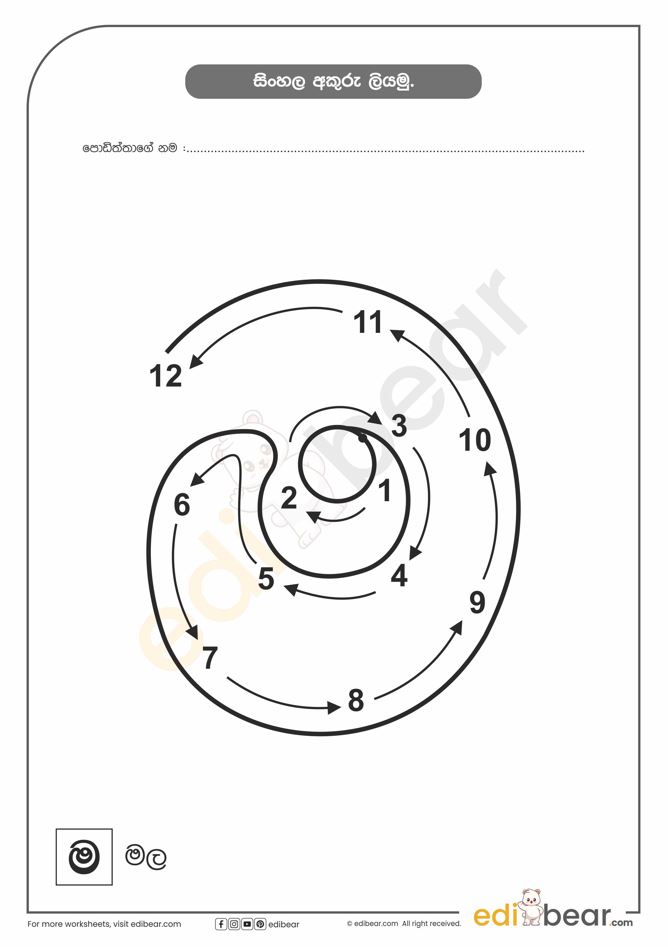 Sinhala Letter ම Tracing Worksheet