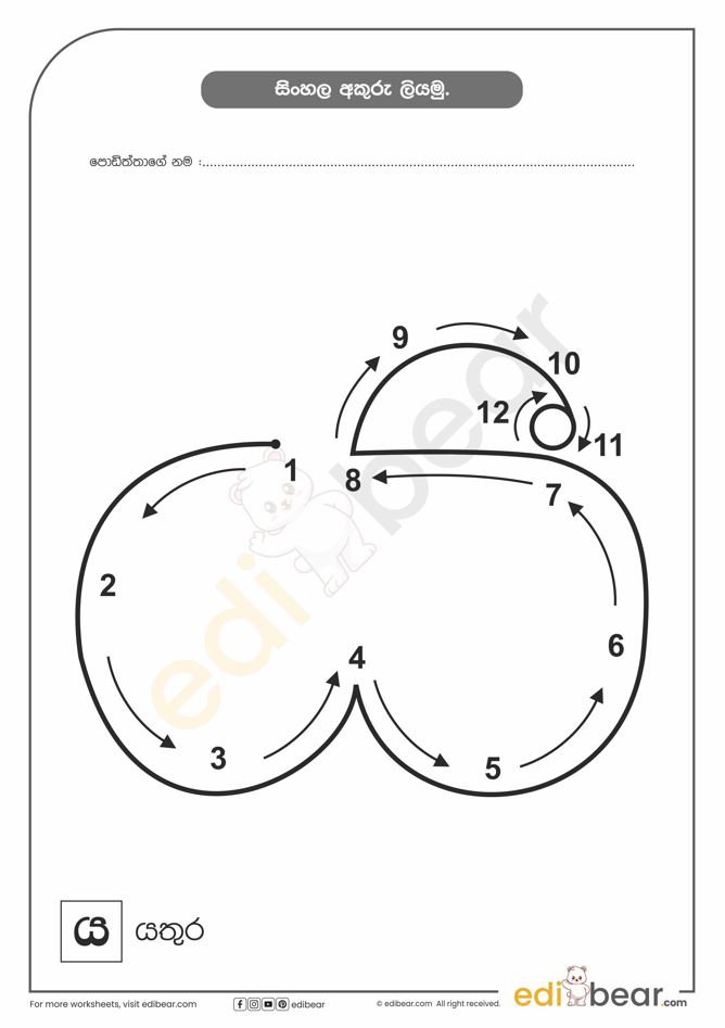 Sinhala Letter ය Tracing Worksheet