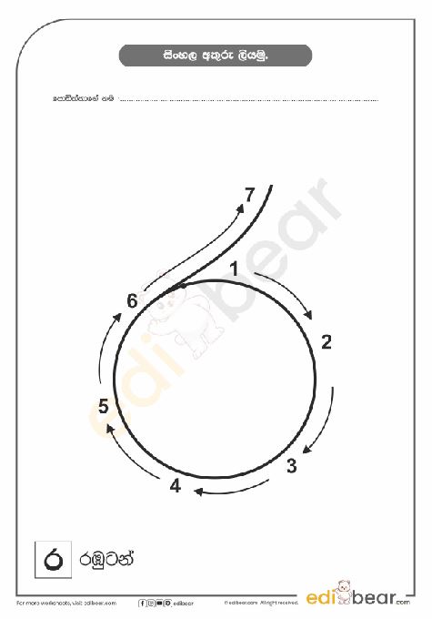 Sinhala Letter ර Tracing Worksheet