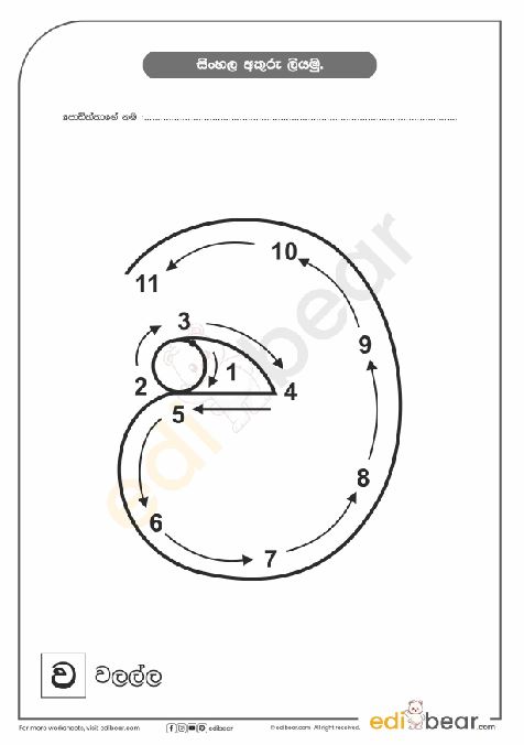 Sinhala Letter ව Tracing Worksheet