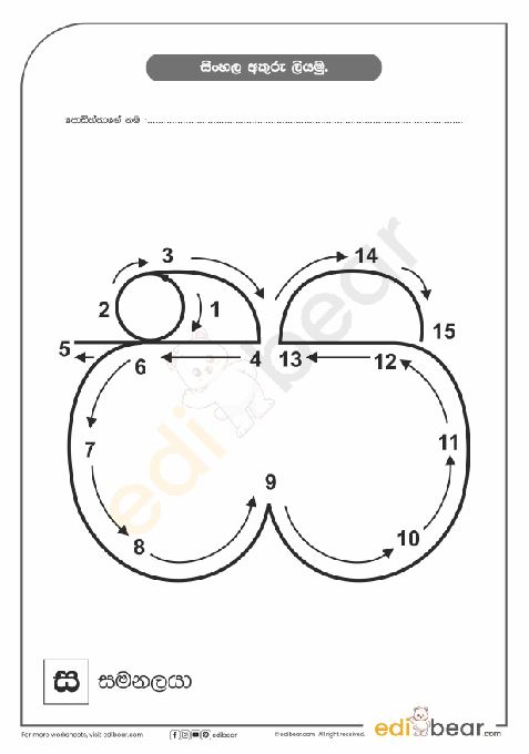 Sinhala Letter ස Tracing Worksheet